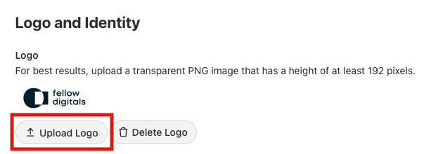 Laden Sie das Logo Ihres Unternehmens über den Punkt "Logo hochladen" hoch. Dieses erscheint dann oben links in Ihrer Akademie. Am besten laden Sie ein Logo mit transparentem Hintergrund hoch, z. B. im PNG-Format. Die Höhe des Logos sollte mindestens 192px betragen.