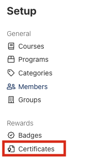 Zu den Zertifikaten gelangen Sie in Ihrer Akademie als Manager oder Autor über Optionen > Zertifikate.