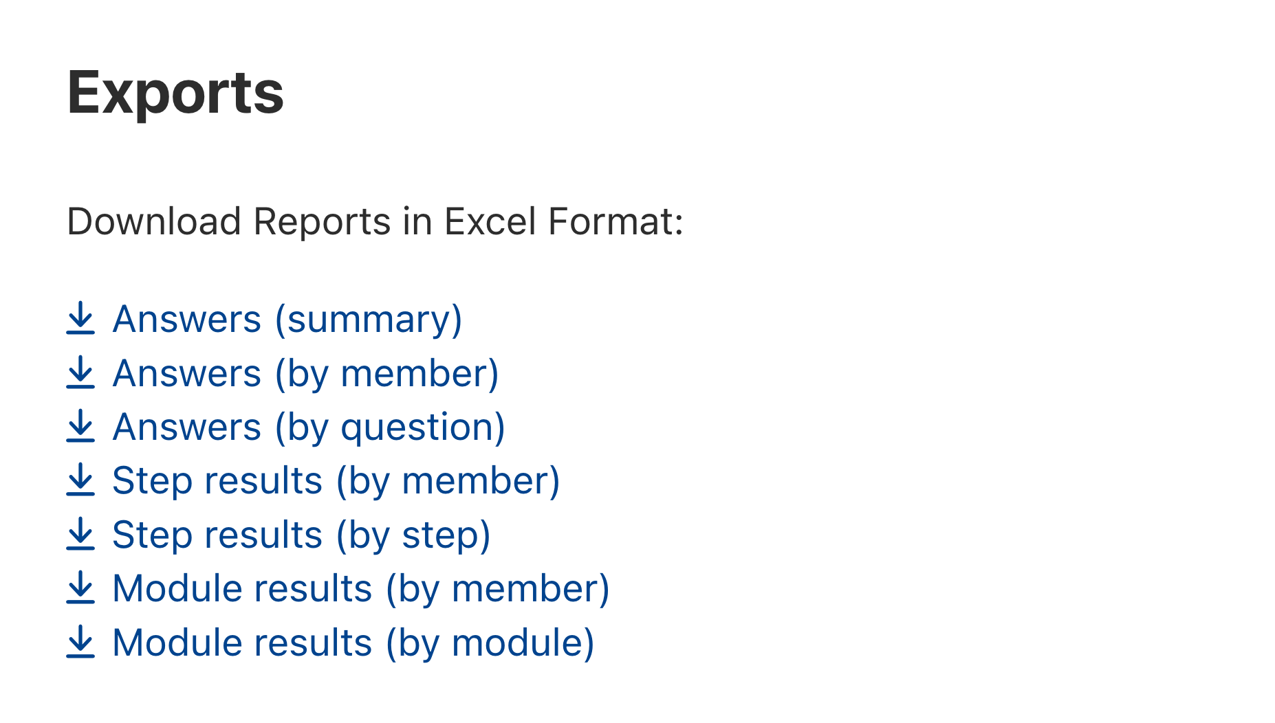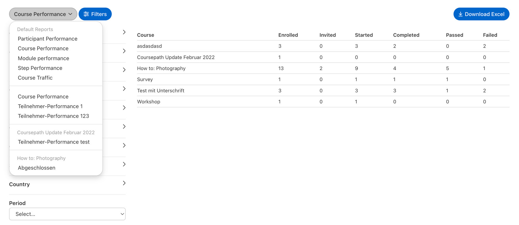 Über die Kursebene gelangen Sie außerdem zu vorgefertigten Berichten, die Ihnen zum Download im Excel-Format zur Verfügung stehen.