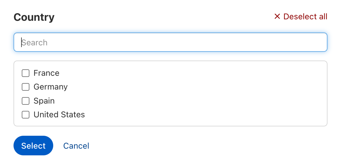 Filter-Beispiel. Hier: nach Ländern sortiert.
