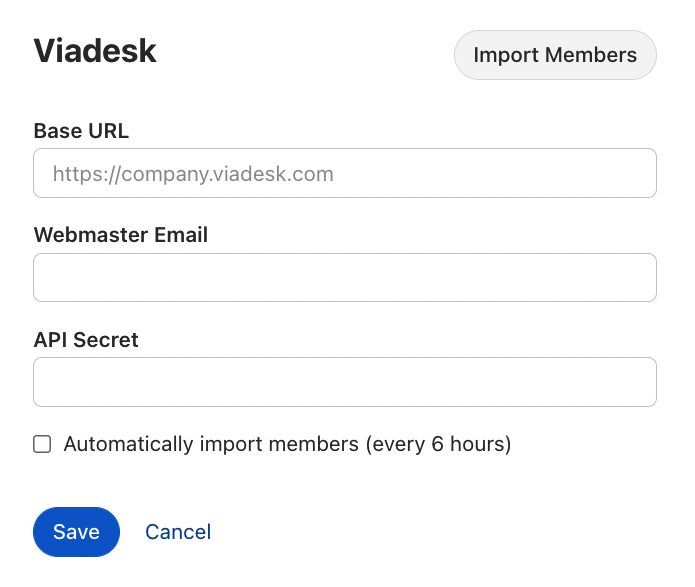 In den Akademie-Optionen > Viadesk tragen Sie die dafür nötigen Informationen ein, die Sie in Ihrer Viadesk-Umgebung finden.