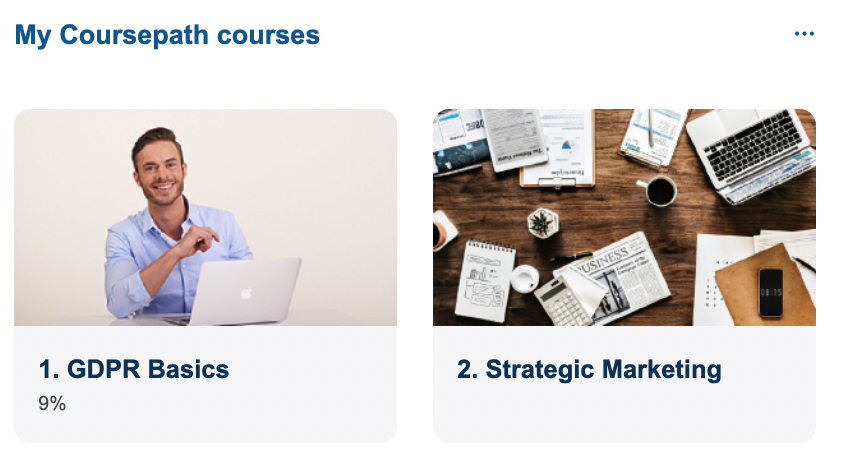 - Ein Überblick der nutzerspezifischen eLearning Kurse inklusive des Fortschritts der Nutzer direkt im Intranet.