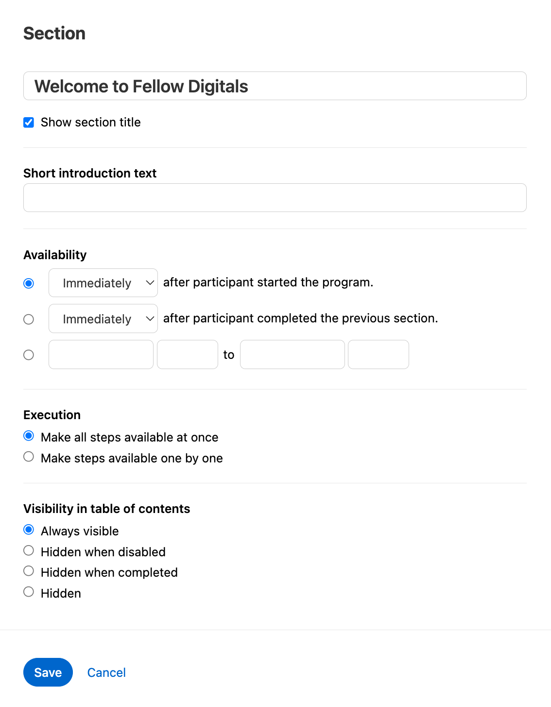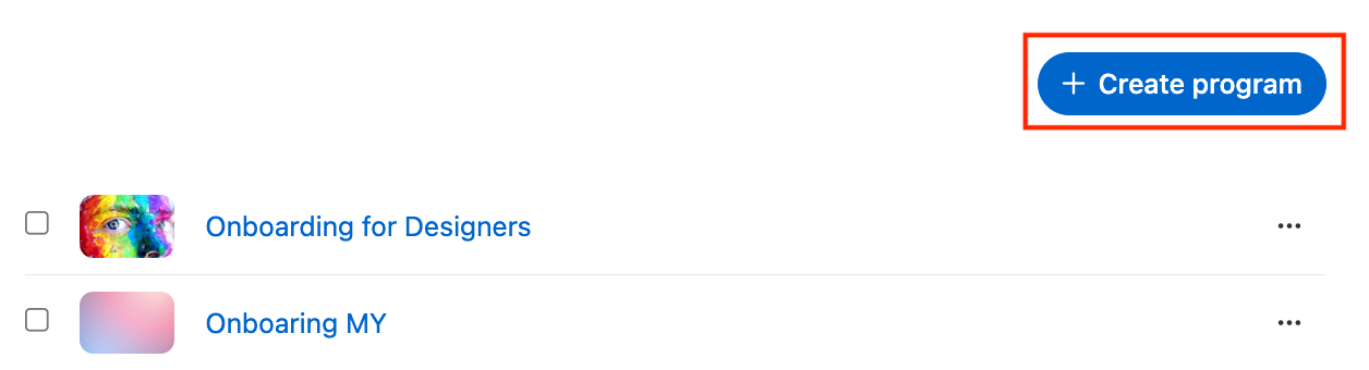 Um einen Lernpfad zu erstellen, können Sie die Funktion "Programme" verwenden, um Inhalte nacheinander verfügbar zu machen, z. B. für Onboarding-Zwecke.