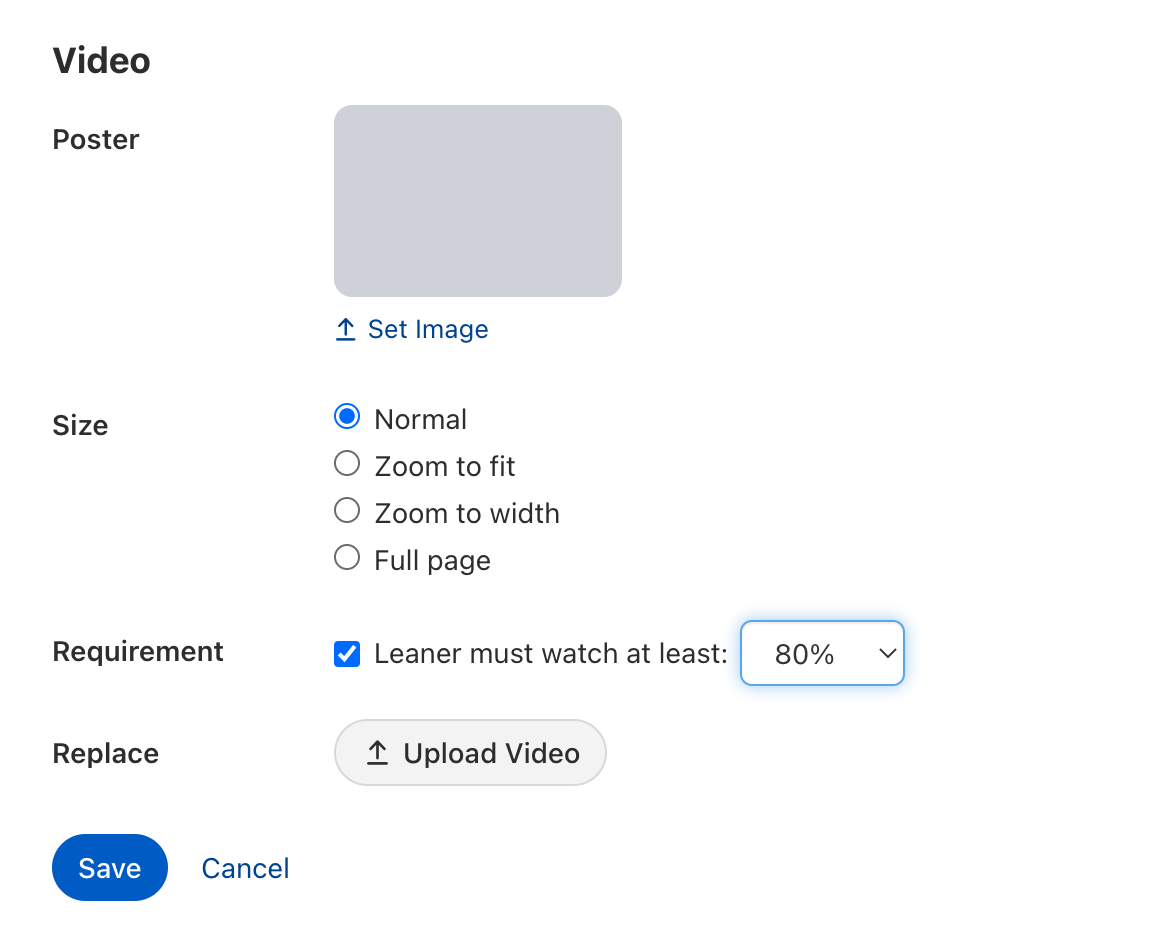 Diese können Sie im Bearbeiten-Modus über das Stift-Symbol aufrufen. In diesem Menü, in können Sie z. B. einstellen, wie viel Prozent des Videos geschaut werden muss, um den Lernschritt abschließen zu können.