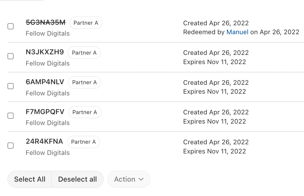 Voucher-Codes eignen sich hervorragend, wenn Sie Mitarbeiter oder Partner einladen wollen, deren E-Mail-Adressen Ihnen nicht bekannt sind. Generieren Sie dann z. B. 100 Voucher-Codes für Partner A und 250 Voucher-Codes für Partner B und überlassen Sie es jeweils dem Partner, die Vouchers intern zu verteilen und einzusetzen.