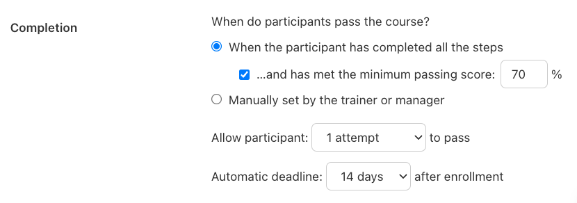 Optionen zur Kurseinschreibung. Manuelles Teilnehmer Einladen ist bei jeder Option möglich