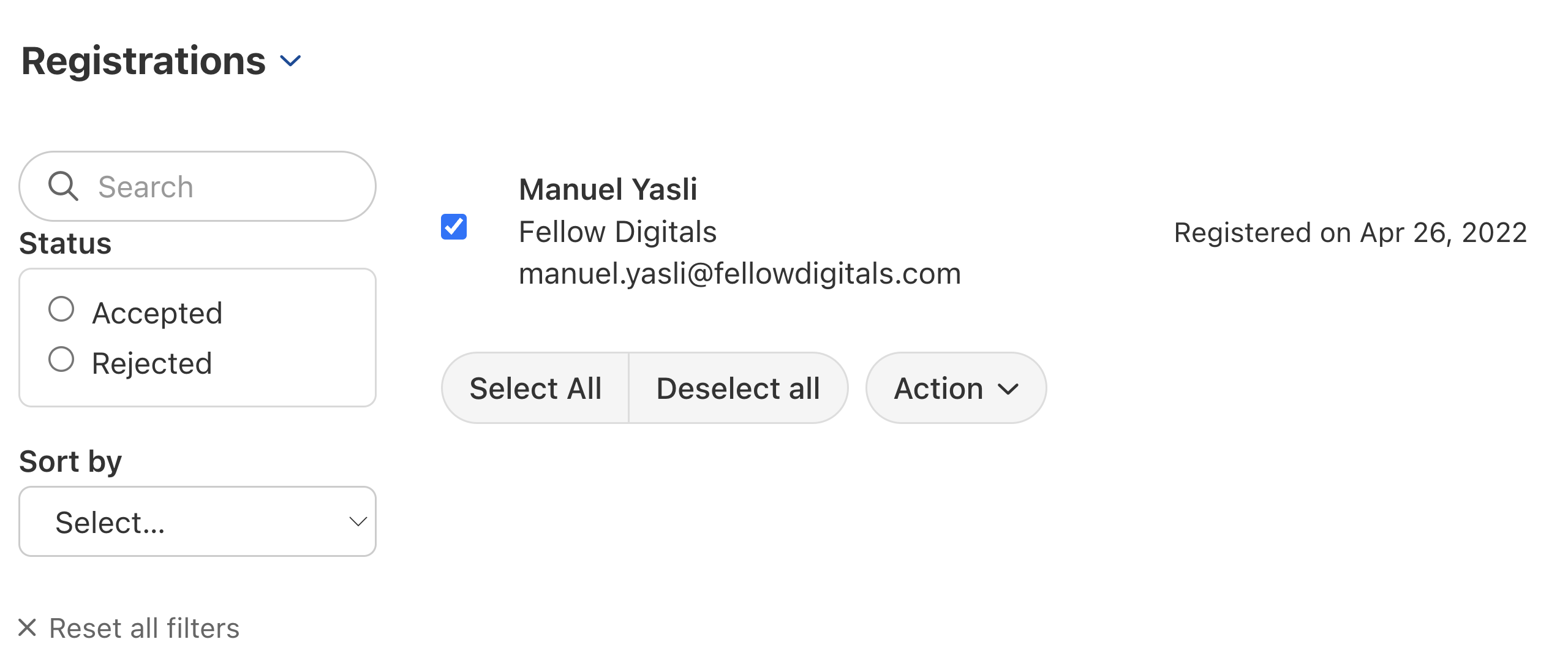 Anfragen zur Registrierung können akzeptiert oder abgelehnt werden.