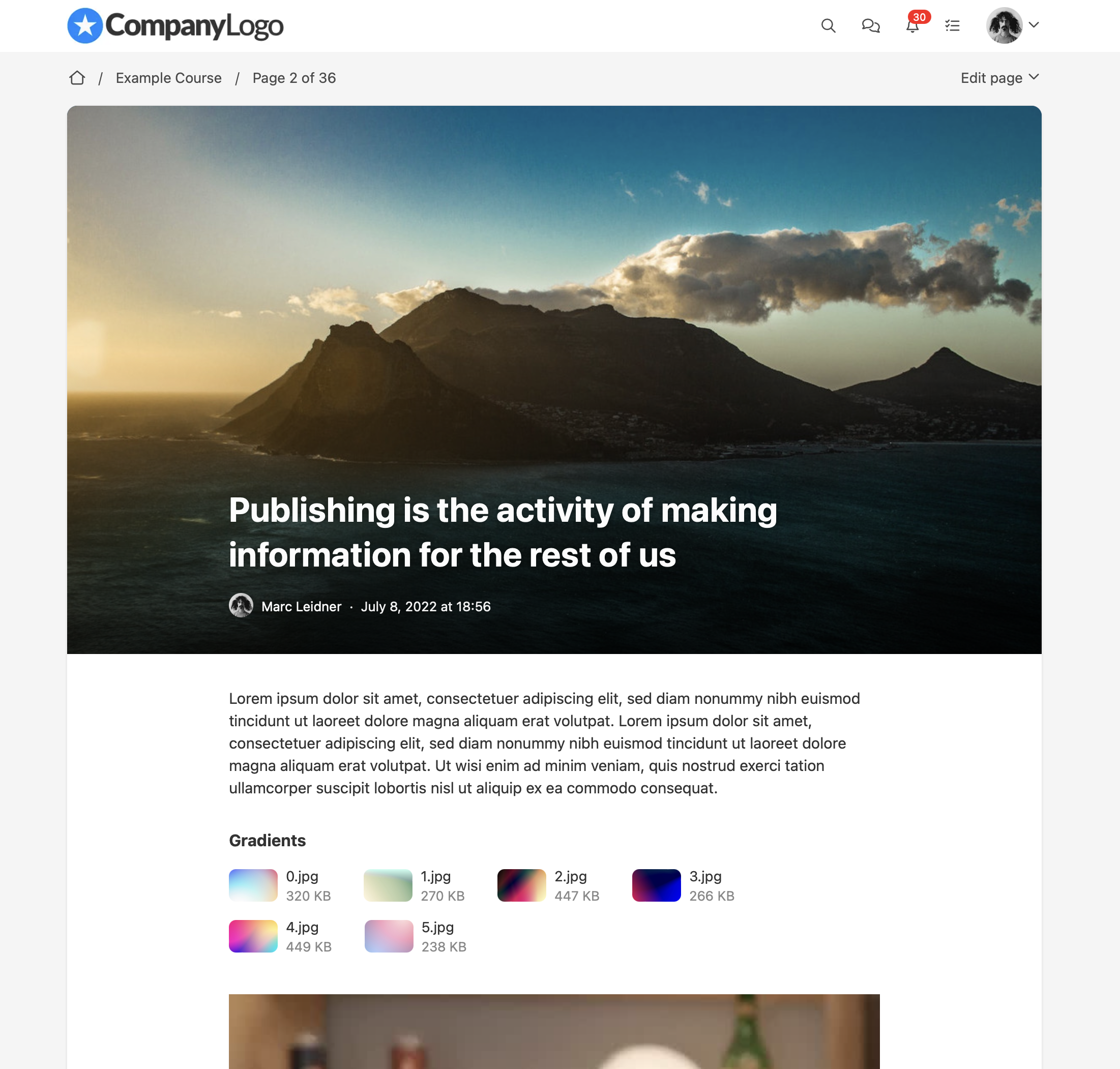 Anwendungsbeispiel: Mit Seiten haben Sie die Möglichkeit z. B. Wikis oder Nachrichten zu schreiben und als Teil Ihrer Akademie bereitzustellen. Denkbar ist, dass Sie z. B. eine eigene Startseite erstellen, das ausschließlich Wiki-Einträge anzeigt – wenn gewünscht auch nur für eine bestimmte Zielgruppe.
