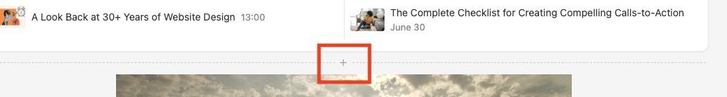 Eine Seite kann mit einer Reihe von Inhaltsblöcken oder Widgets eingerichtet werden, um die von Ihnen gewünschte Erfahrung zu schaffen. Neue Inhalte und Widgets können an der gewünschten Position hinzugefügt werden. Über oder unter bestehenden Blöcken haben Sie die Möglichkeit, ein zusätzliches Widget oder einen Inhaltsblock hinzuzufügen.