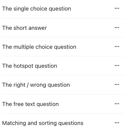 Om je medewerkers te testen met een set willekeurig gegenereerde testvragen, maak je binnen je cursus een module die bestaat uit een willekeurig aantal vragen – je vragenpool. Er kan gebruikgemaakt worden van alle beschikbare vraagsoorten, zoals Multiple Choice- of hotspotvragen.