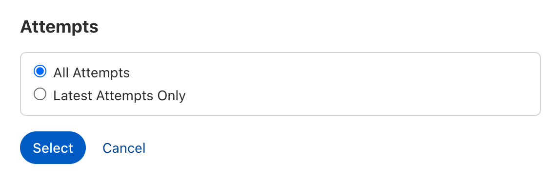 Met het filter Pogingen kun je bepalen of alle pogingen van de deelnemers worden weergegeven in het rapport of liever alleen de laatste.